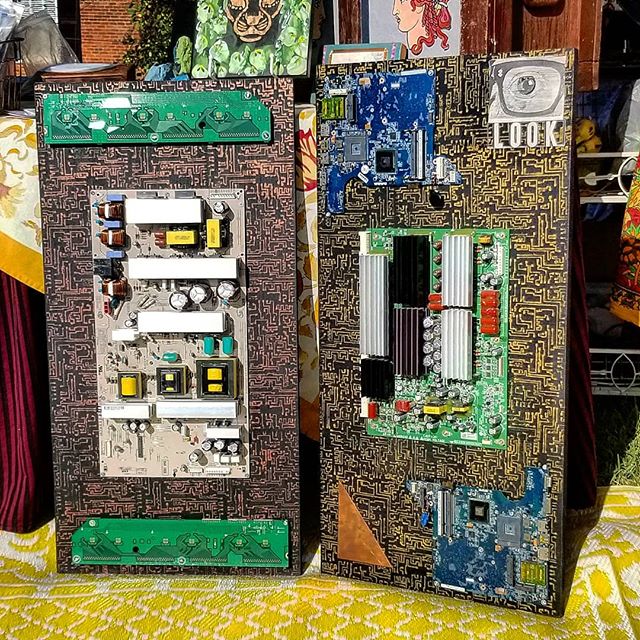 This hand designed and tooled etched copper cuff features the alchemist’s element glyphs.